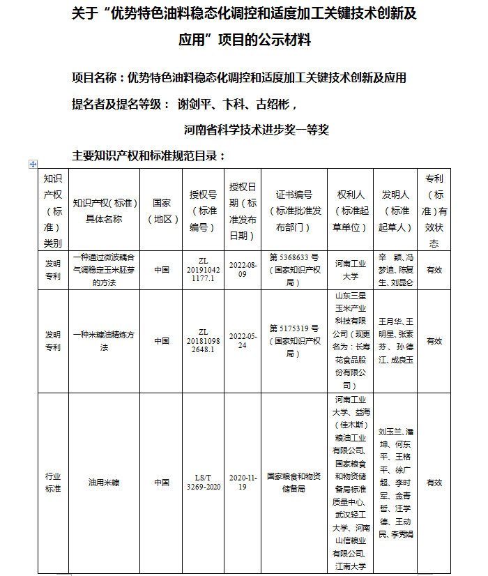 關于“優勢特色油料穩態化調控和適度加工關鍵技術創新及應用”項目的公示材料
